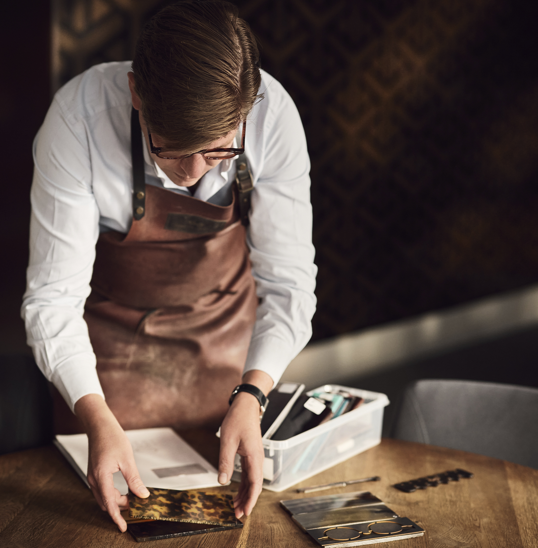 Het is een combinatie van elegantie en vakmanschap. Een op maat gemaakte bril, vervaardigd door een ambachtsman wiens winkel een beetje verscholen ligt aan de Zavel... dat is een luxe waarmee je kan uitpakken.